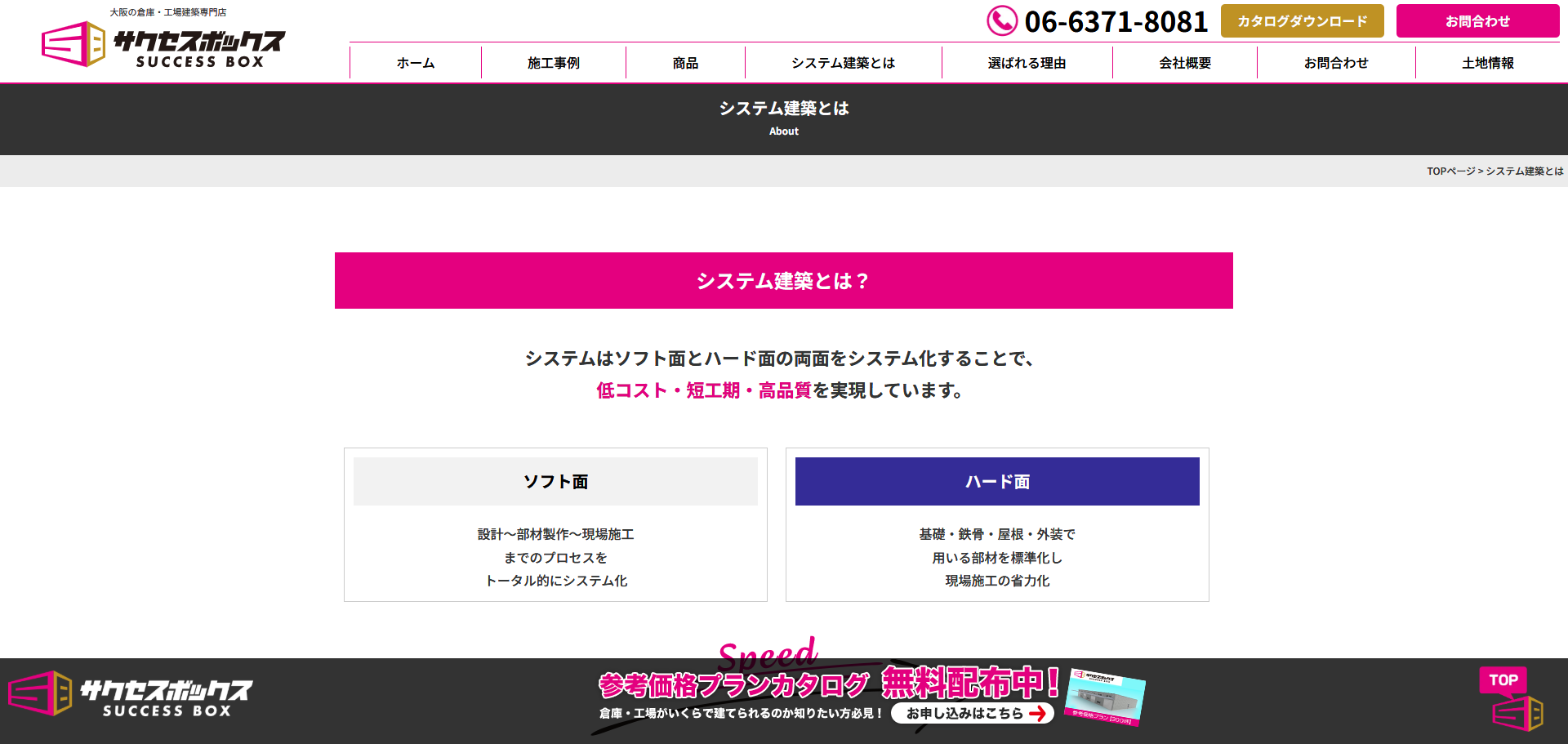 西田工業株式会社(サクセスボックス)は、地域最安値を掲げ、施主の予算に合わせた最適な倉庫建築を提案しています。システム建築を採用することで大空間と高品質を両立し、行政手続きや補助金申請までワンストップで対応できるのも強みです。さらに土地探し専門チームと倉庫専門スタッフが細部までサポートしています。