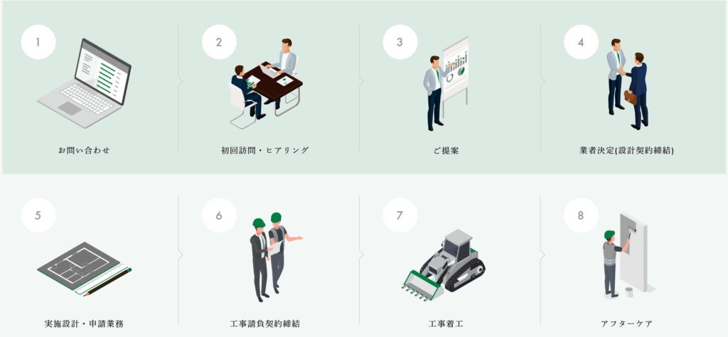 建築は多くの専門的な知識を必要とし、とくに大規模な建築では、お客様だけでは判断が難しい場面も少なくありません。株式会社堀健では、、初回訪問時のヒアリングから始まり、提案、設計、申請業務、工事着工、そして工事完了後のアフターケアまで、すべての段階でお客様をサポートする体制を整えています。また、株式会社堀健では、単に言われたままの建物を提供するのではなく、お客様の事業戦略を深く理解し、それに適した提案を行っていることも強みです。だからこそ、事業を拡大したり幅広く展開していきたいという企業と、長期的なパートナーシップを築いていくことができます。